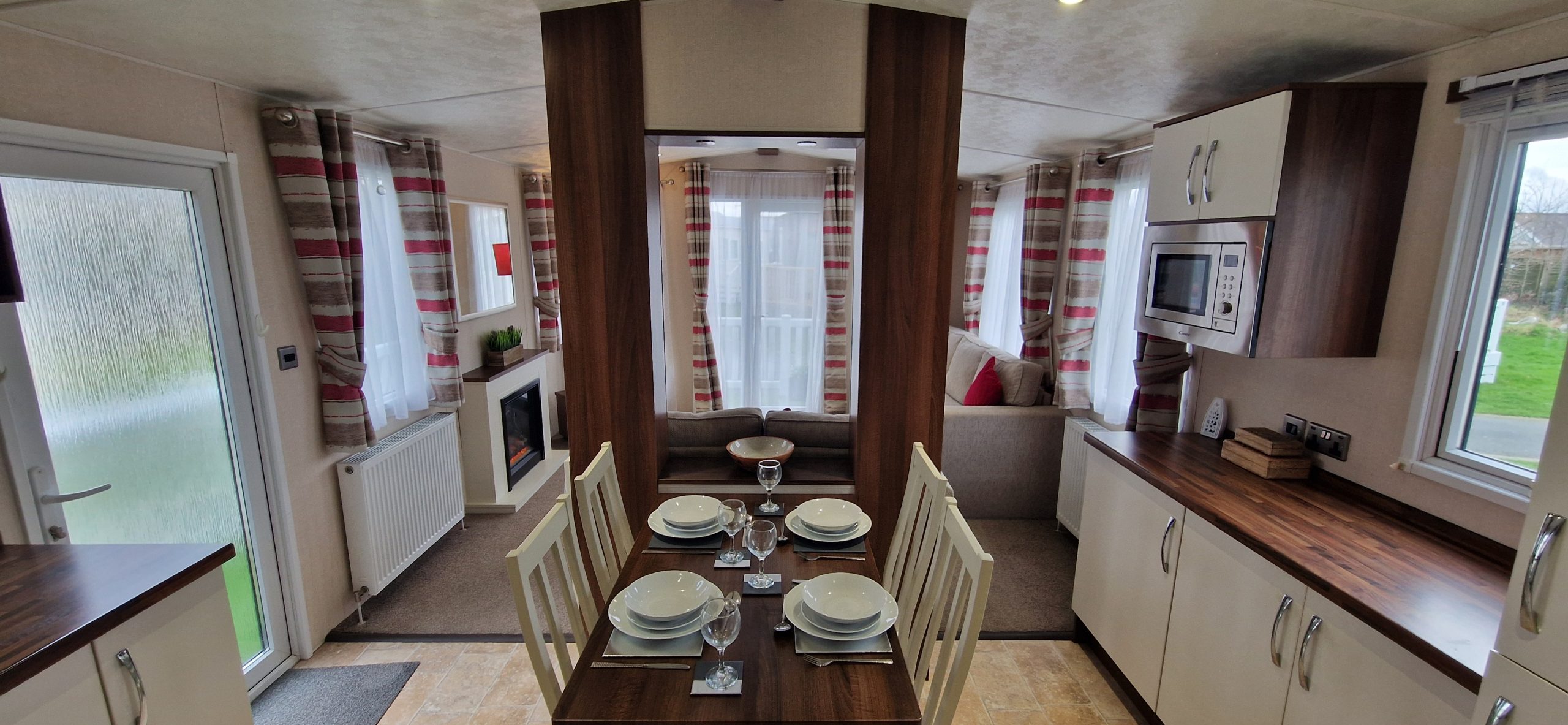 The lounge area feels bright and sociable, flowing naturally into the dining and kitchen space — ideal for easy family living. Well-proportioned bedrooms and convenient bathroom facilities make it perfectly suited for weekend breaks or longer seasonal stays.